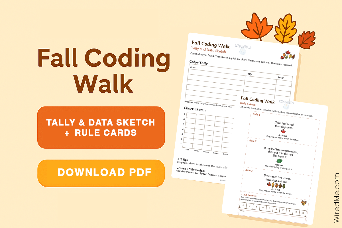 Build real coding habits on your next walk. Print the Fall Coding Walk worksheet and rule cards, then count, sort, and sketch the data.